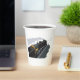 A black steam train going along the tracks. This design looks really effective on these Paper Cups