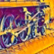 A pop art design of steam train wheels.