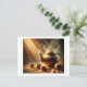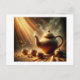 Steaming Clay Teapot And Cups On Table, Postcard