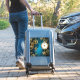 Turquoise, textured, steampunk background with brass and gold gears, a silver key and the clock. Steampunk style.