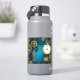 Turquoise, textured, steampunk background with brass and gold gears, a silver key and the clock. Steampunk style.
