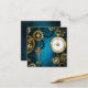 Turquoise, textured, steampunk background with brass and gold gears, a silver key and the clock. Steampunk style.