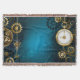 Turquoise, textured, steampunk background with brass and gold gears, a silver key and the clock. Steampunk style.
