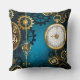Turquoise, textured, steampunk background with brass and gold gears, a silver key and the clock. Steampunk style.