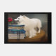 Steampunk animals AI. Design of a dog and books. Very steampunk. An artificial intelligence created piece. Welcome to our home. Customizable Dog mat. Customizable American Eskimo dog with books on a door mat. Great for book lovers. Great for dog lovers.