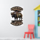 A mechanical buffalo stands on a platform, adorned with gears and pipes.
