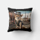 Steampunk Chihuahua and Train Throw Pillow
