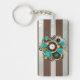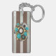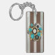 Patterned, antique watch, adorned with jewelry, gold hour hands and Latin numerals with turquoise roses on brown, striped background. Steampunk style.
