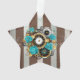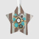Patterned, antique watch, adorned with jewelry, gold hour hands and Latin numerals with turquoise roses on brown, striped background. Steampunk style.