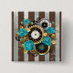 Steampunk Clock and Turquoise Roses on Striped 2 Inch Square Button