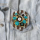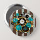 Steampunk Clock and Turquoise Roses on Striped 4 Inch Round Button