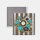 Steampunk Clock and Turquoise Roses on Striped Bus Magnet