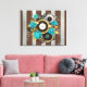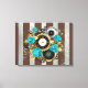Steampunk Clock and Turquoise Roses on Striped Canvas Print