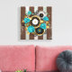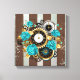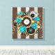 Steampunk Clock and Turquoise Roses on Striped Canvas Print