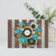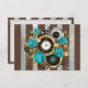 Patterned, antique watch, adorned with jewellery, gold hour hands and Latin numerals with turquoise roses on brown, striped background. Steampunk style.
