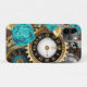 Steampunk Clock and Turquoise Roses on Striped Case-Mate iPhone Case