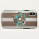 Steampunk Clock and Turquoise Roses on Striped Case-Mate iPhone Case