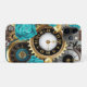 Steampunk Clock and Turquoise Roses on Striped Case-Mate iPhone Case