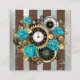 Steampunk Clock and Turquoise Roses on Striped Enclosure Card
