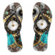Steampunk Clock and Turquoise Roses on Striped Flip Flops