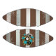 Patterned, antique watch, adorned with jewellery, gold hour hands and Latin numerals with turquoise roses on brown, striped background. Steampunk style.