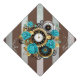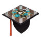 Steampunk Clock and Turquoise Roses on Striped Graduation Cap Topper