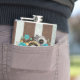 Steampunk Clock and Turquoise Roses on Striped Hip Flask