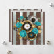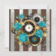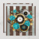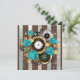 Steampunk Clock and Turquoise Roses on Striped Holiday Card