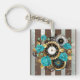 Steampunk Clock and Turquoise Roses on Striped Keychain