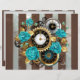 Steampunk Clock and Turquoise Roses on Striped Letterhead
