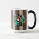 Steampunk Clock and Turquoise Roses on Striped Magic Mug