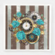 Steampunk Clock and Turquoise Roses on Striped Napkin