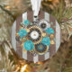 Steampunk Clock and Turquoise Roses on Striped Ornament