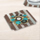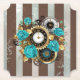 Steampunk Clock and Turquoise Roses on Striped Paper Coaster