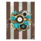Steampunk Clock and Turquoise Roses on Striped Photo Print
