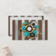 Steampunk Clock and Turquoise Roses on Striped Place Card