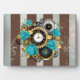 Steampunk Clock and Turquoise Roses on Striped Plaque
