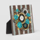 Steampunk Clock and Turquoise Roses on Striped Plaque