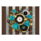 Steampunk Clock and Turquoise Roses on Striped Poster