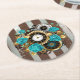 Steampunk Clock and Turquoise Roses on Striped Round Paper Coaster