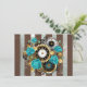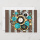Steampunk Clock and Turquoise Roses on Striped Thank You Card