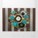 Steampunk Clock and Turquoise Roses on Striped Tri-Fold Announcement