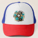 Steampunk Clock and Turquoise Roses on Striped Trucker Hat