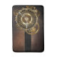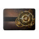 Antique, fantastic watches with gold and brass gears on a brown, rusty background. Steampunk style.