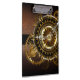 Antique, fantastic watches with gold and brass gears on a brown, rusty background. Steampunk style.