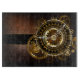 Antique, fantastic watches with gold and brass gears on a brown, rusty background. Steampunk style.