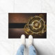 Antique, fantastic watches with gold and brass gears on a brown, rusty background. Steampunk style.