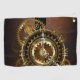 Antique, fantastic watches with gold and brass gears on a brown, rusty background. Steampunk style.
