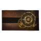 Antique, fantastic watches with gold and brass gears on a brown, rusty background. Steampunk style.