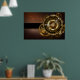Antique, fantastic watches with gold and brass gears on a brown, rusty background. Steampunk style.